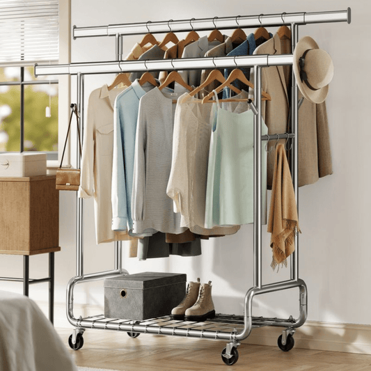 Kleiderstangen mit Rollen bieten maximale Mobilität. Du kannst sie problemlos verschieben und an verschiedenen Orten nutzen. Der doppelte Kleiderständer mit Rollen ist ideal für flexible Einsatzmöglichkeiten.
